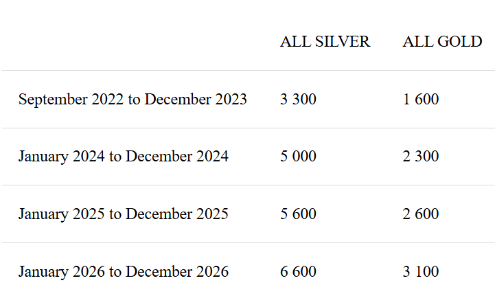 A maximum number of fast track wil be granted to ALL members from the launch of Cross Reward as per the below table :