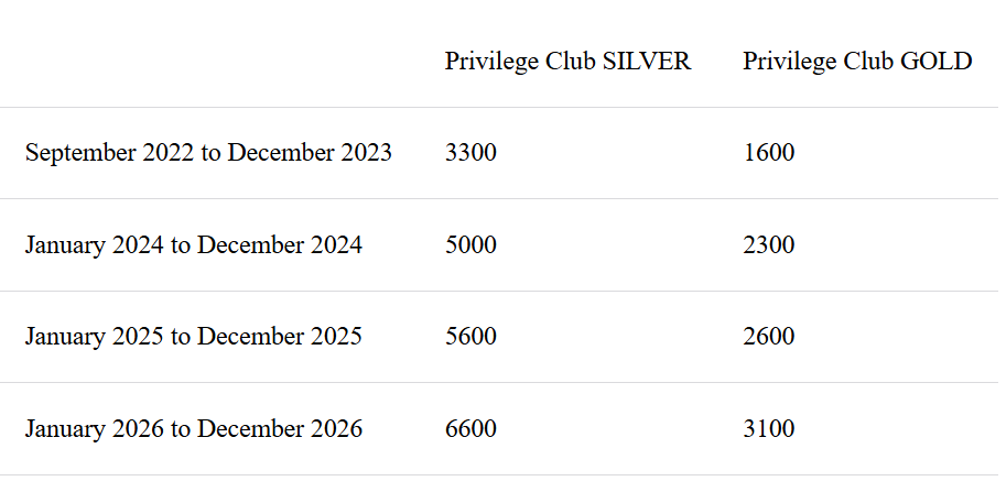 A maximum number of fast track will be granted to Privilege Club members from the launch of Cross Reward as per the below table :