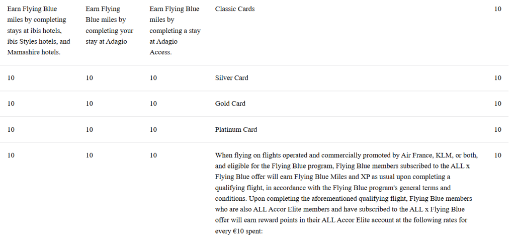 Earn Flying Blue miles for completing stays at all participating AccorHotels brands (excluding Adagio, Adagio Access, Ibis Hotels, Ibis Styles, and Mamashire Hotels).