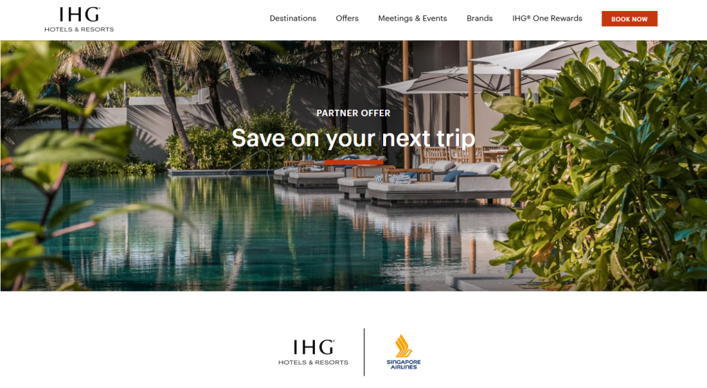 Singapore Airlines passengers can enjoy at least 15% off the Best Flexible Rate at participating IHG® Hotels & Resorts worldwide. This exclusive offer is designed for travelers flying with Singapore Airlines and staying with IHG during the promotion period.